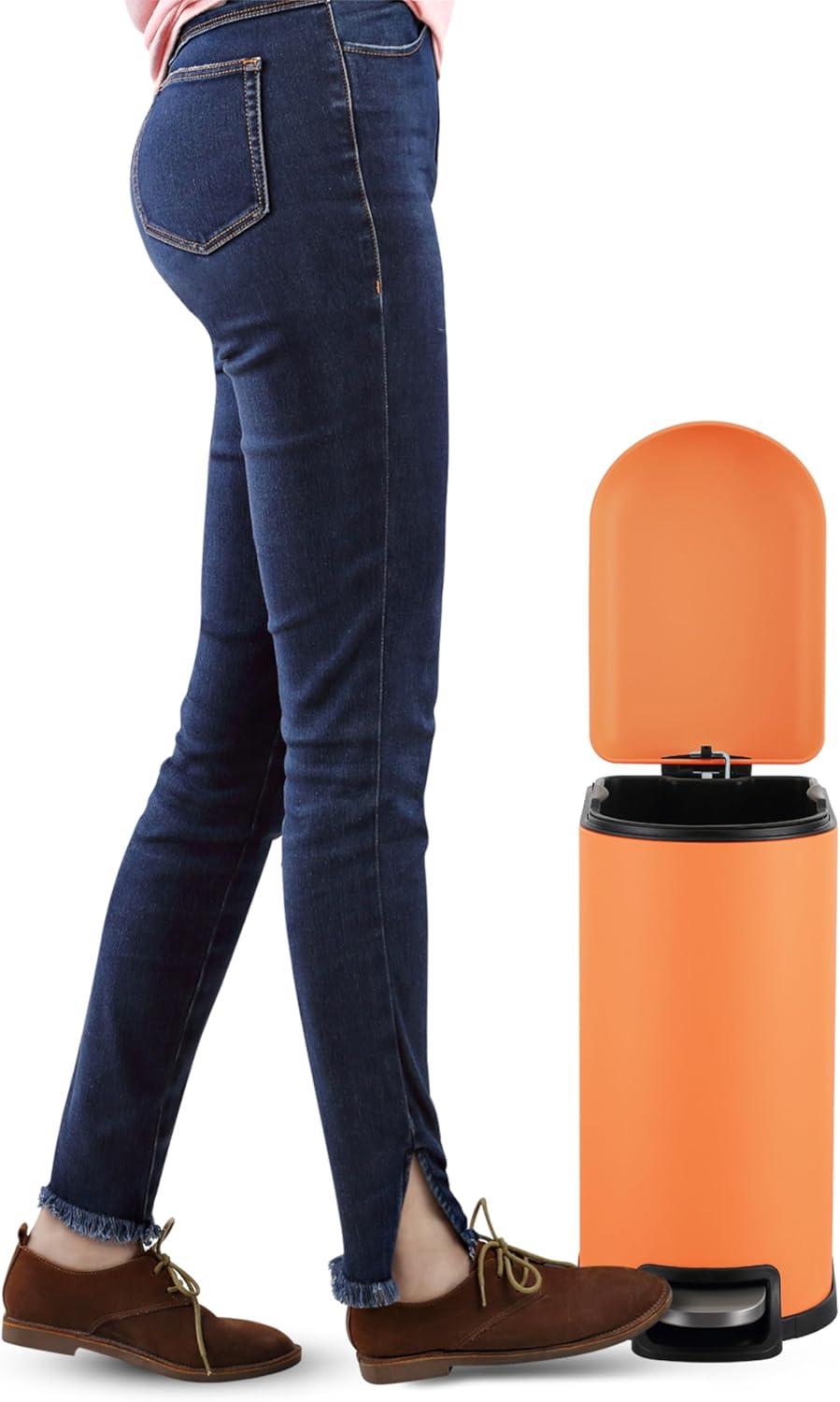 happimess HPM1009K Roland Mini 2.6-Gallon Step-Open Trash Can, Carrot Cake,with Soft-Close Lid, Fingerprint Resistant, Modern, Minimalistic for Home, Kitchen, Laundry Room, Office, Bedroom, Bathroom