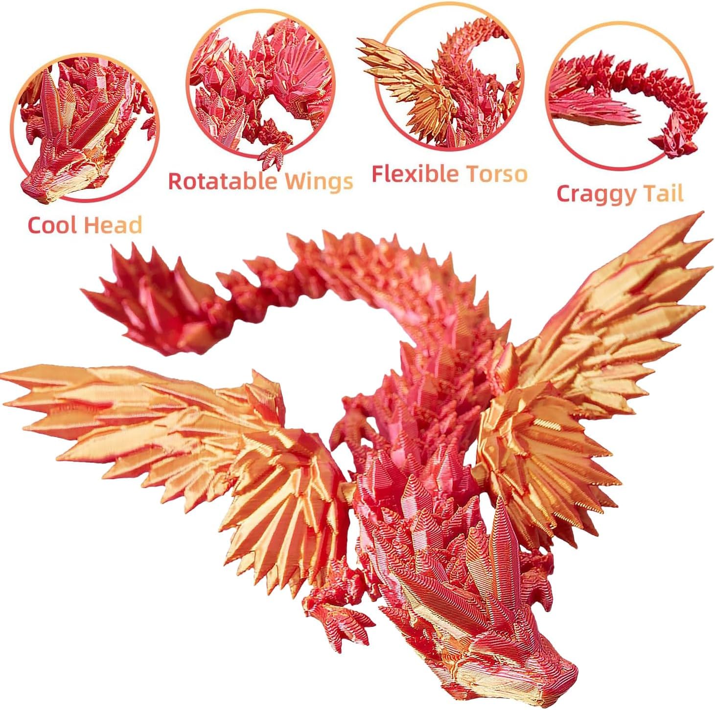 - Our 3D printed articulated crystal dragon offers a wide range of motion, allowing you to create dynamic and lifelike poses that capture the essence of this magnificent creature.