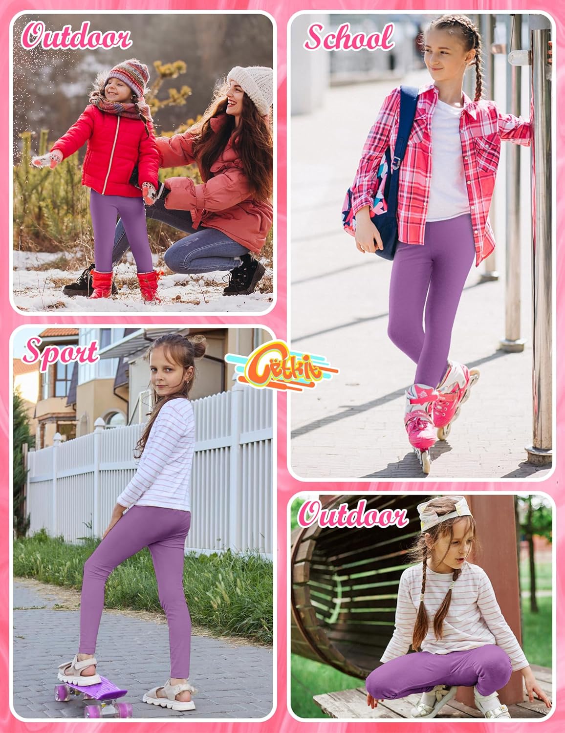 - 【High-Quality Girls Stretch Pants】 These girls purple leggings are made of 94% polyester and 6% spandex. The fabric is stretchy, ultra-soft, and breathable, making these girls' athletic leggings very comfortable and flexible. All leggings are made from premium four-way stretch fabric, with an elastic band sewn into the waistband, which lies flat on the waist for a comfortable and good fit.
