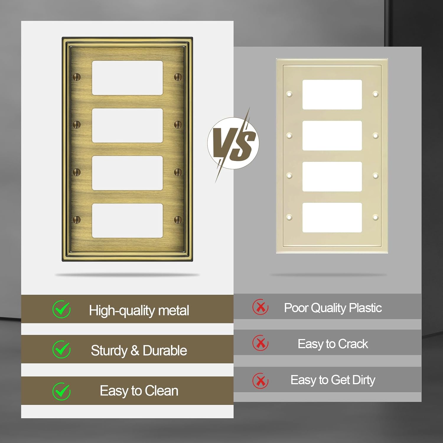 - 【Quality Metal Material】Crafted from robust and corrosion-resistant metal, the outlet covers wall plate guarantees long-lasting reliability. Standing up to everyday use without compromising on style. Ensuring it remains a stunning addition to your home for years to come.