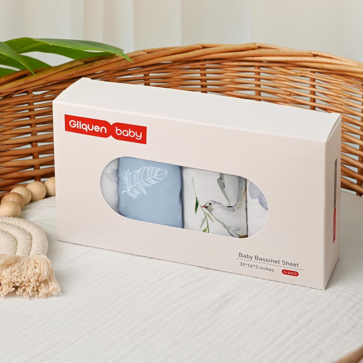 Gllquen Baby Bassinet Sheets 4 Pack, Breathable Cozy Fitted Mattress Sheet, Elastic Travel Crib Fashionable Pattern, Standard Cradle Safe Sheets for Babys Boy Girls 32"x16" (Pigeon)