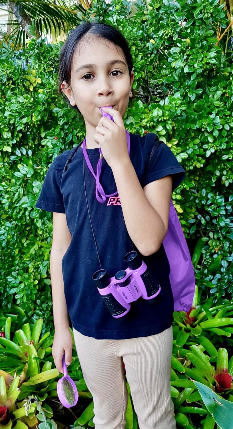 - šLARGE MAGNIFYING GLASS - 3 x magnification for examining plants, insects and rocks. Wonderfully fun for camping trips and outdoor or indoor investigations. SAFE Non Choking pealess FOX WHISTLE - great for hiking, scouting, sports, games and safety locator. Clip on thick lanyard to be worn around the neck for quick access for signaling location or emergency use.