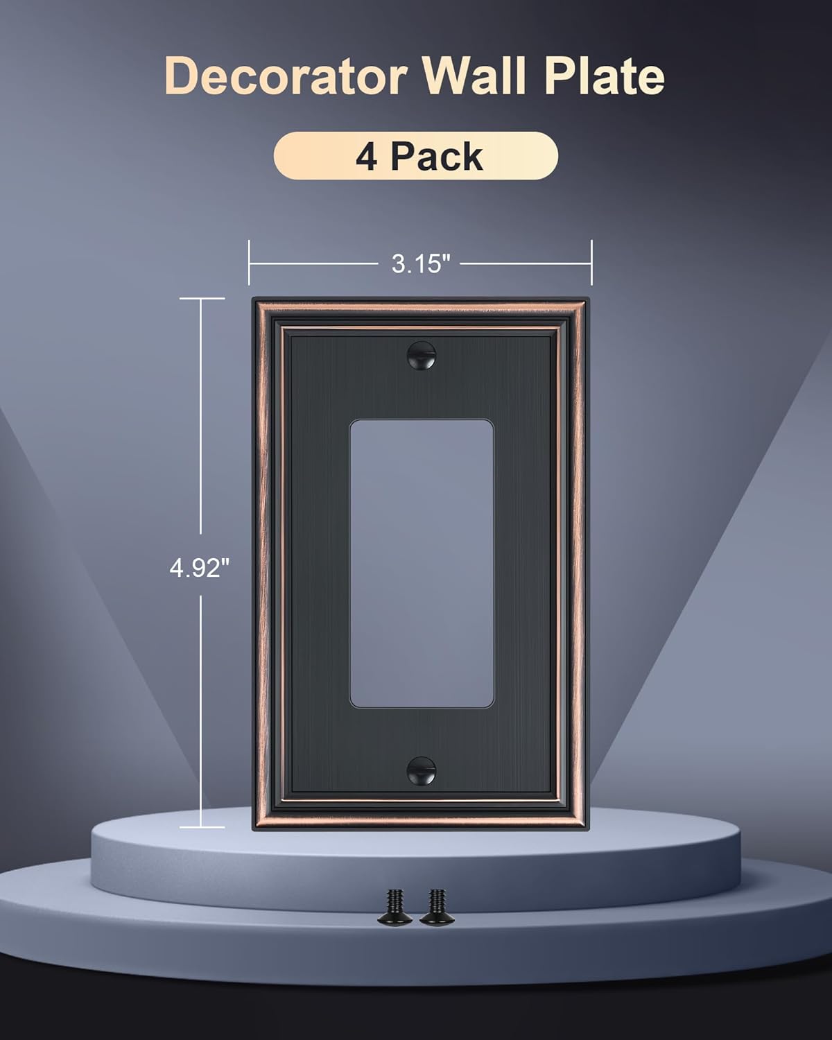 4-Pack Decorator Outlet Cover Plate, Aged Bronze Decorative Switch Plates and Outlet Covers, Durable Zinc Alloy Wall Plates for Electrical Outlets, Receptacle, GFCI Outlet, Dimmer Switch