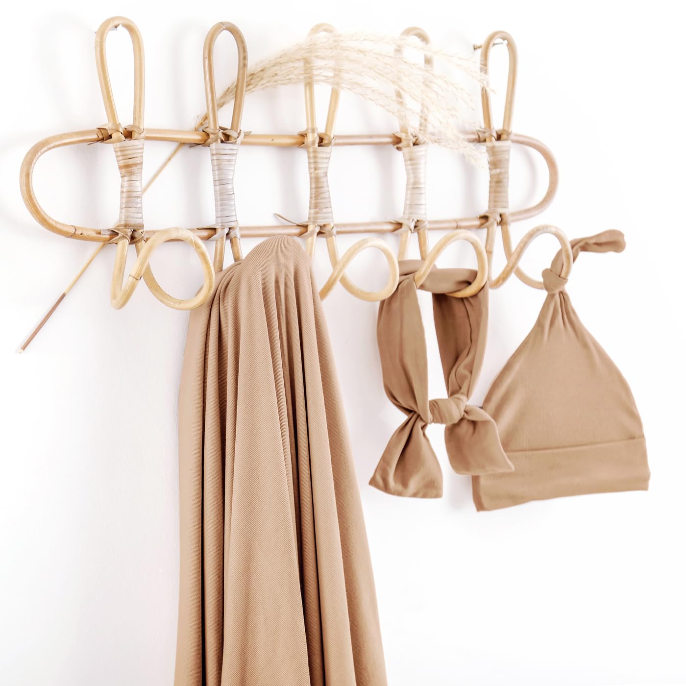 GRSSDER Newborn Swaddle Blanket, Ultra Soft Jersey Receiving Blanket with Matching Headband and Beanie Set 33×44", Stretchy Baby Neutral Swaddle Wrap for Girls and Boys