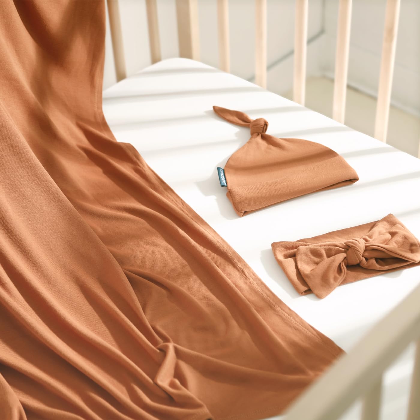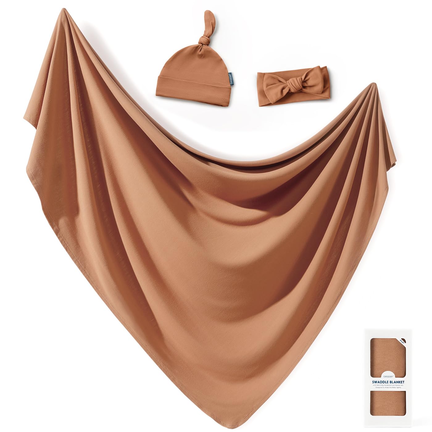 GRSSDER Newborn Swaddle Blanket, Ultra Soft Jersey Receiving Blanket with Matching Headband and Beanie Set, Stretchy Baby Swaddle 47×47", Extra Large Nursery Swaddles Wrap for Girls and Boys