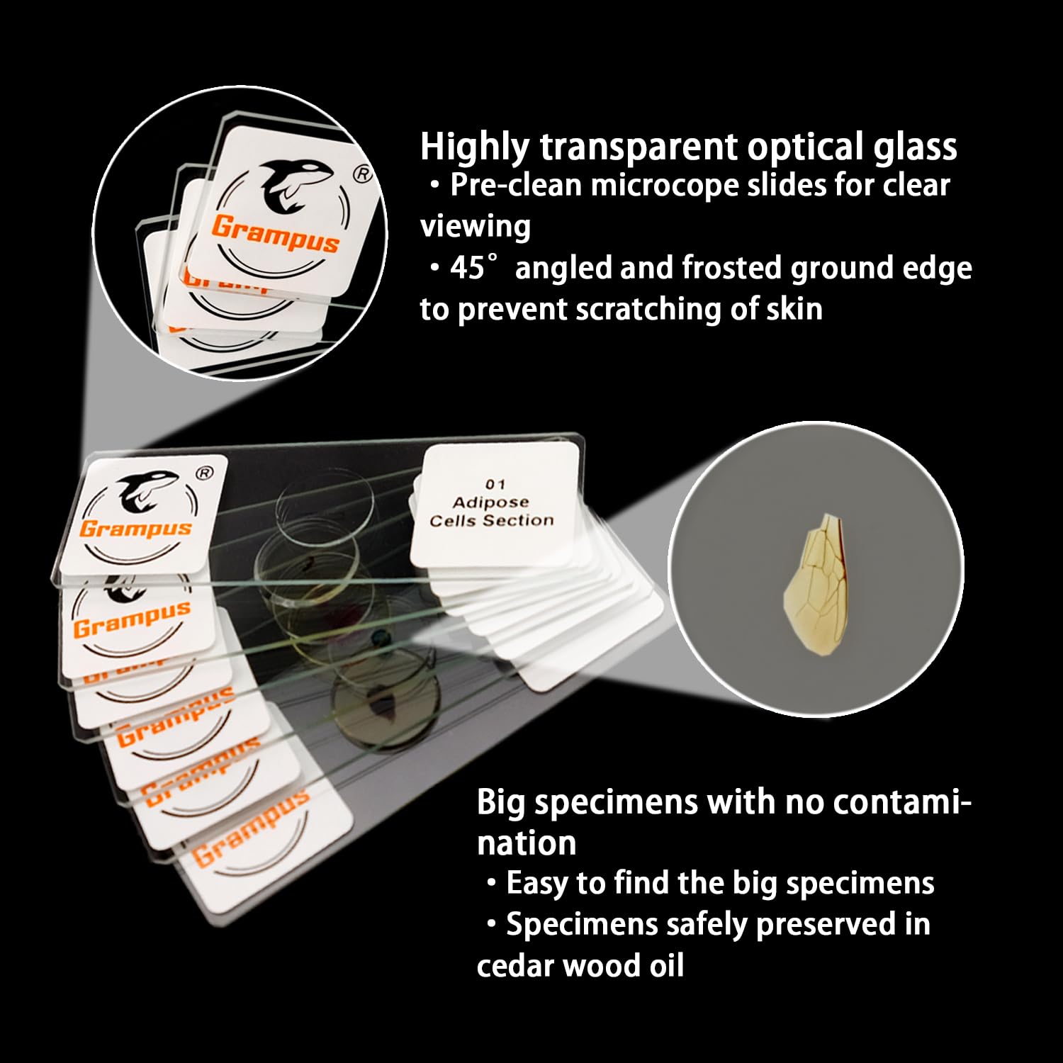 - Abundant Observation Type: Well selected microscope prepared slides of histology. Each slide has a name label and attached a list of all glass slide catalogues, helps stimulate children's imagination and creativity as well as their interest in exploring nature