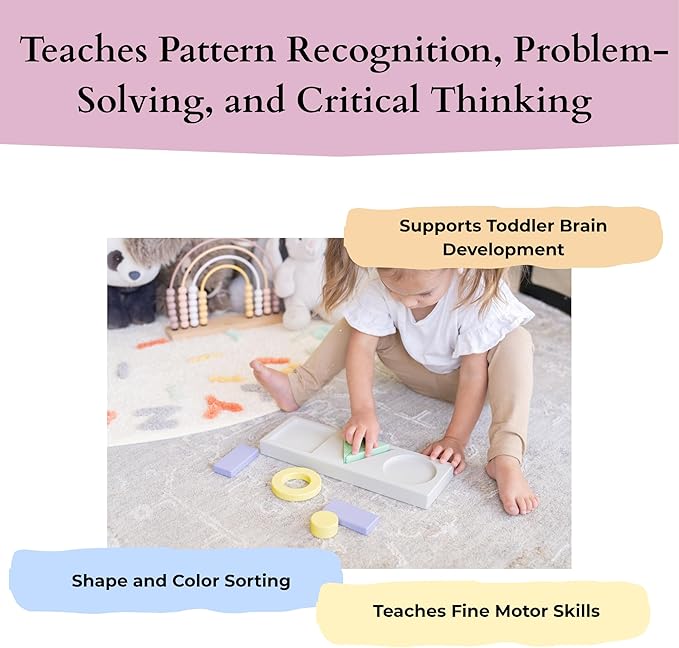 - TEACHES PROBLEM SOLVING SKILLS: The sorting toys for toddlers 1-3 provide challenging, calming activities for your child using well made, elegantly, and simply-designed toddler Montessori toys without the flashing lights or loud sounds that often accompany modern toys. The activities teach pattern recognition, problem solving, critical thinking, and fine motor skills.