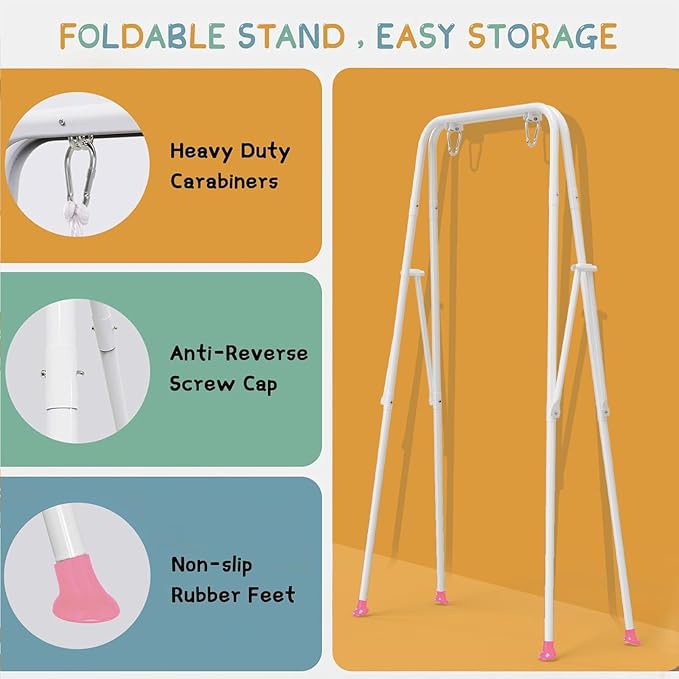 - 【Independent Frame】Our sturdy frame requires no tools for assembly and folds flat for easy storage and portability of the baby jumpers and bouncers. The swing stand is constructed of powder-coated steel,it's durable and rust-resistant