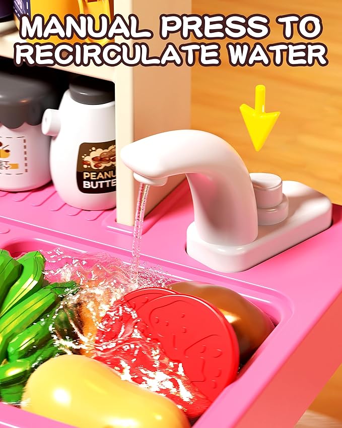 - [Interactive Learning and Sustainability] Teach kids about water conservation and sustainability with the sink's water circulation system. Let them clean their play foods, plates, and utensils while having fun and enhancing environmental awareness.