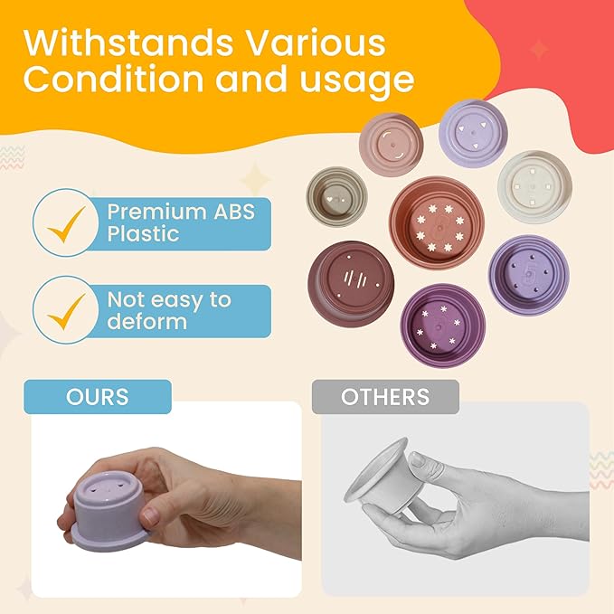 - DURABLE & SAFE – Our toddler stacking cups are manufactured with high-quality, BPA-free, non-toxic materials to ensure your child's safety. These stack cups form an excellent and secure playtime companion being the perfect stackable cups for babies, they are designed with utmost care to be both enjoyable and safe.