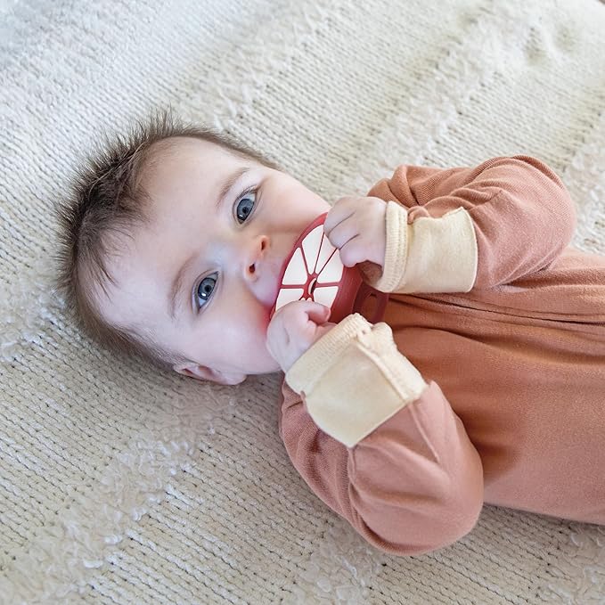 - Gentle Silicone Teethers: Designed to soothe teething discomfort, these mangosteen and watermelon teethers are made from soft, BPA-free silicone that’s safe for your baby’s sensitive gums