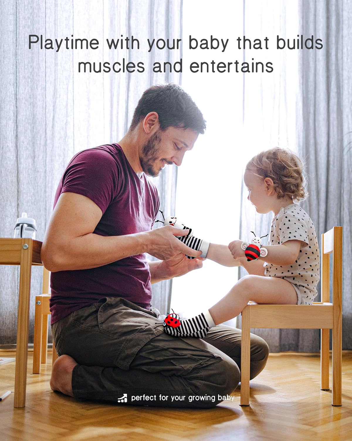 - FIT COMFORTABLY - This set contains two soft wrist rattles and two foot finders. These wrist rattles and foot finders fit easily and comfortably on baby's wrists and ankles. Extended straps allow for continued use as baby grows.