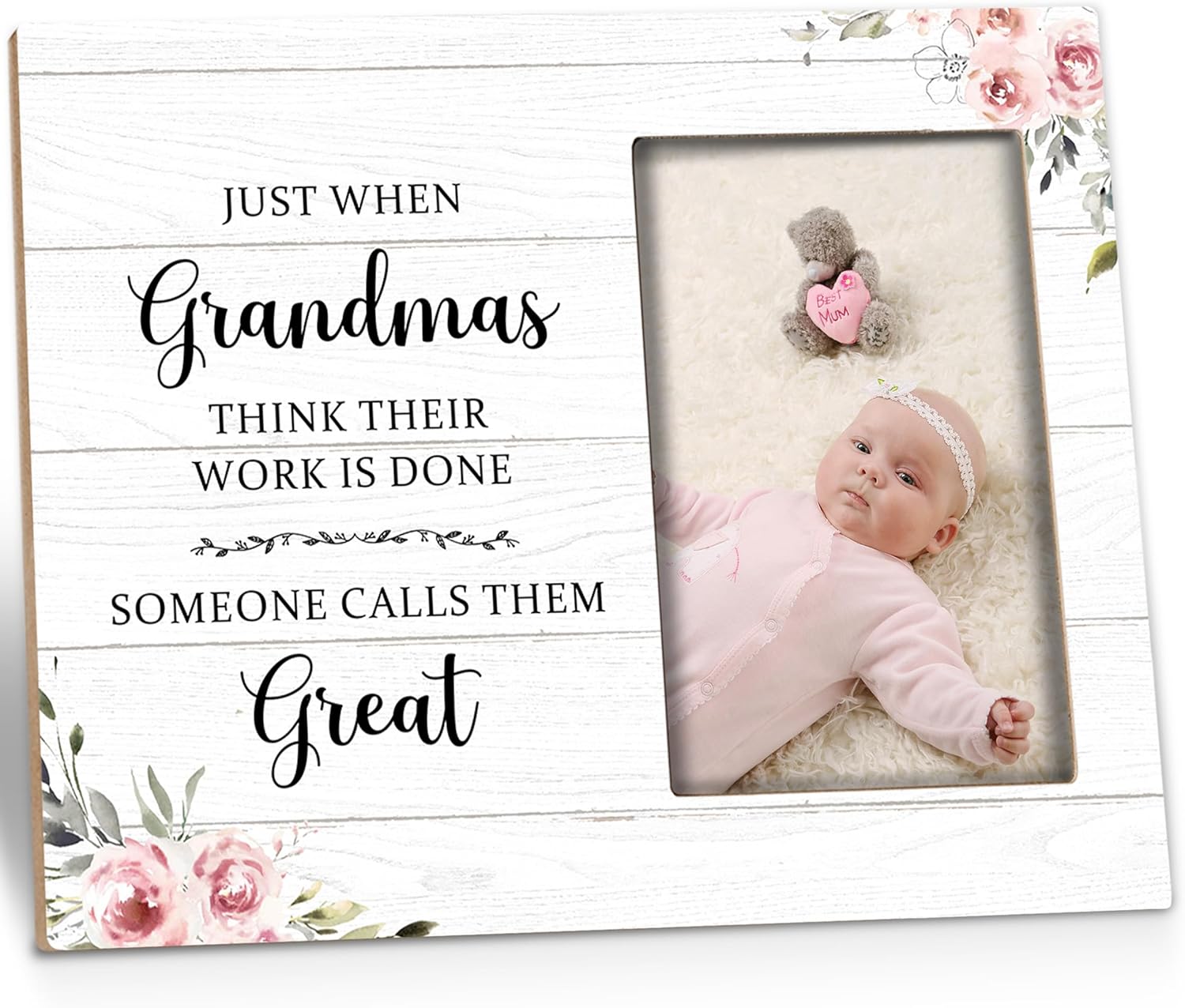 Great Grandma Picture Frame - Great Grandma Baby Announcement Gifts, Just When Grandmas Think Their Work Is Done Someone Calls Them Great Wooden Frame for Tabletop or Wall Hanging 4x6 Photo
