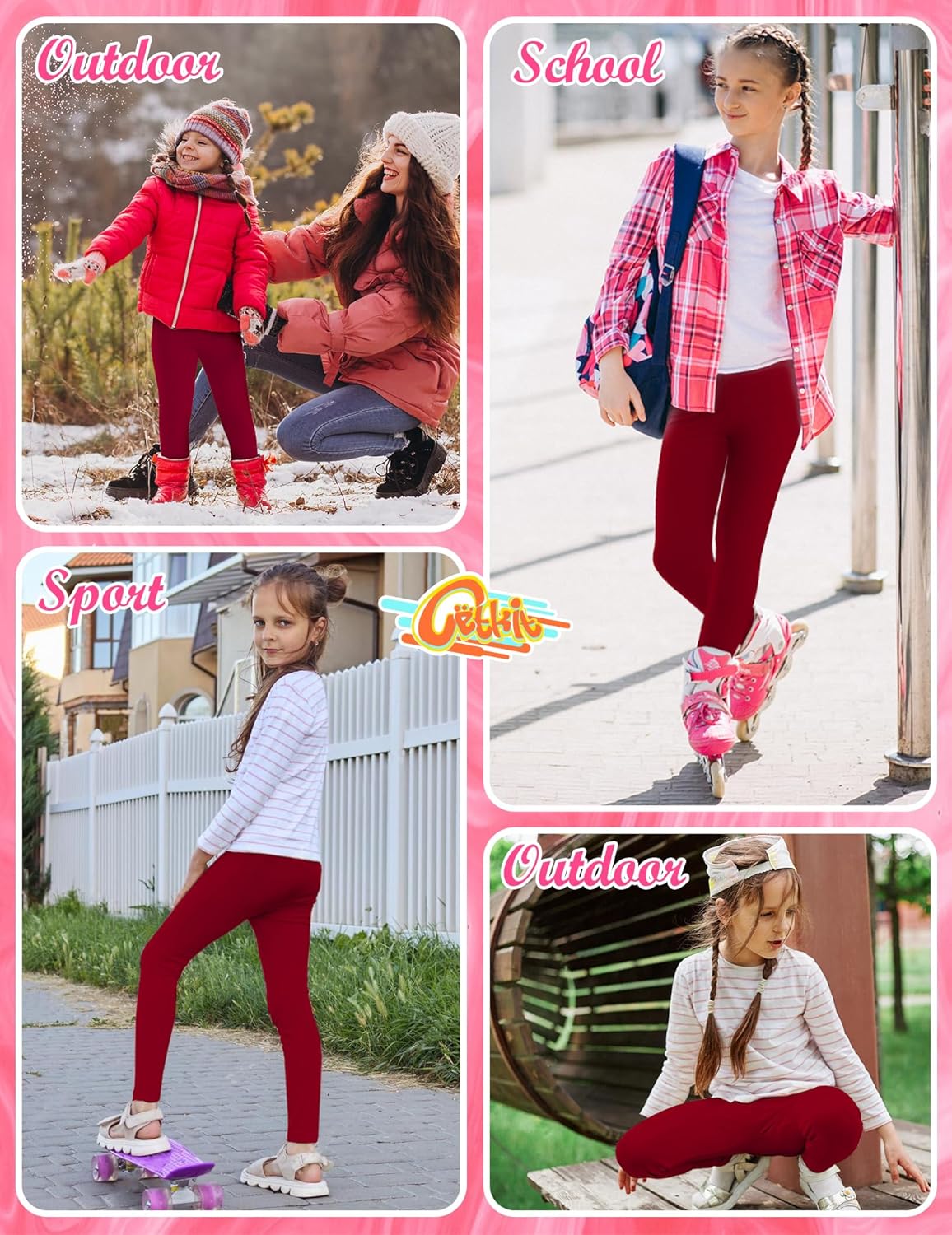 - 【Easy to Care For】 These girls leggings are easy to care for. these toddler Dark red leggings are machine washable and dryable, and CETKIT girls Dark red leggings do not fade easily. They maintain their original color and appearance even after washing and drying. They are not just a gift for kids, but also allow children to enjoy the comfort of sports! Girls' leggings are a convenient and practical addition to any girl's wardrobe.