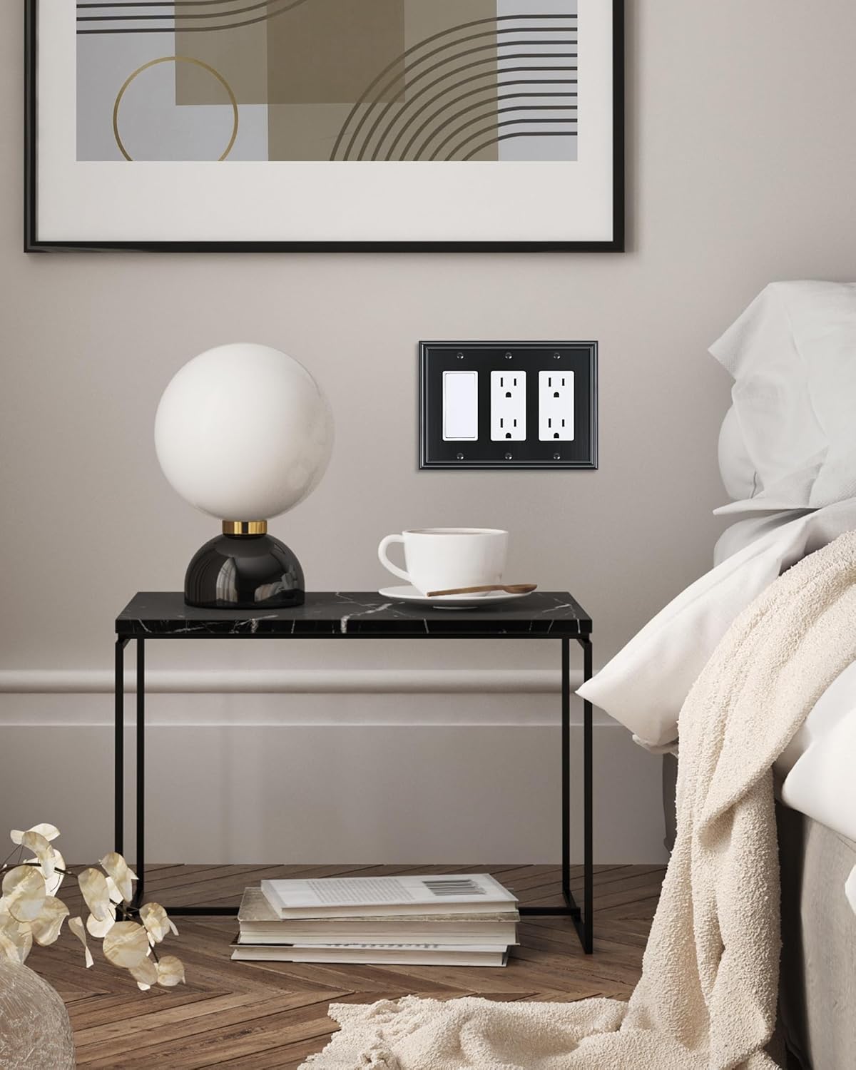 - Durable Solid Zinc Alloy - Constructed from thick and sturdy zinc alloy, the 3 gang wall plate offers exceptional durability and sturdiness, easier to clean and maintain. It is resistant to high impact, tarnishing, and corrosion, unbreakable. Ensuring it remains a stunning and long-lasting addition to your home.