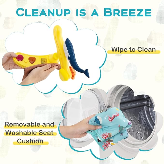 - Cleanup is a Breeze: This baby activity center features a padded seat cushion that is soft, breathable and skin-friendly. Plus, the seat cushion is removable and machine washable, making it easy to clean up any messes. All toys, including the music tray, are detachable, and you can easily wipe them to clean.