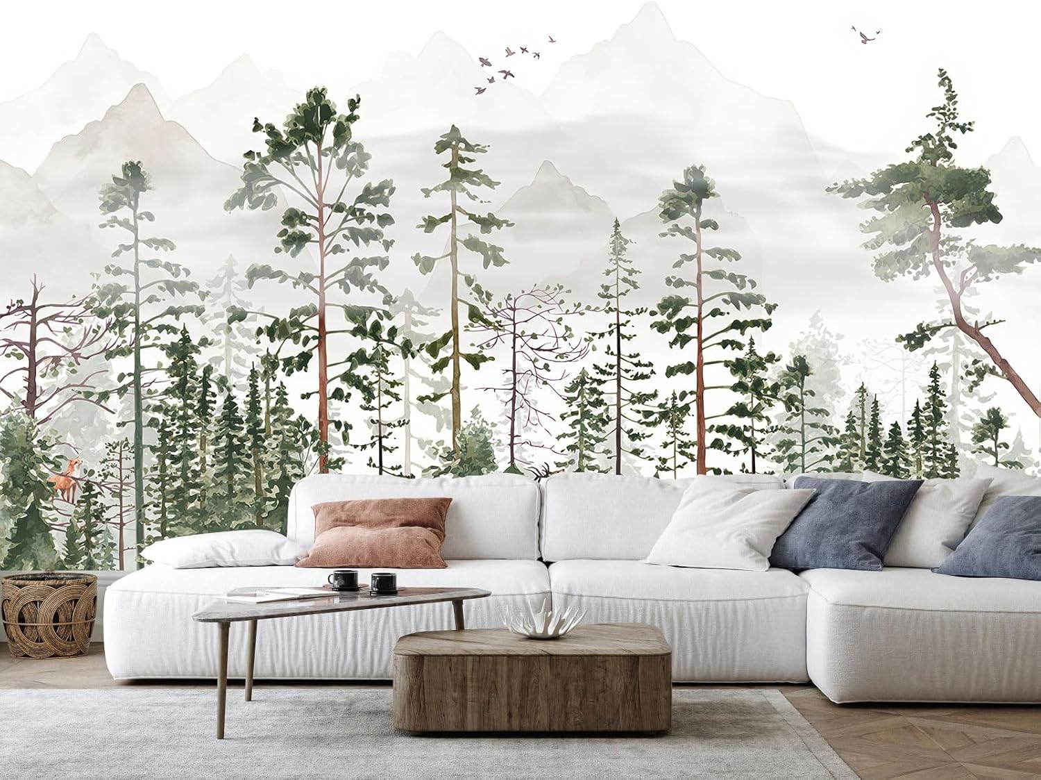 Green Forest Woodland Wallpaper Wall Mural for Nursery Room Girls Room Boys Room(Not Self-Adhesive)