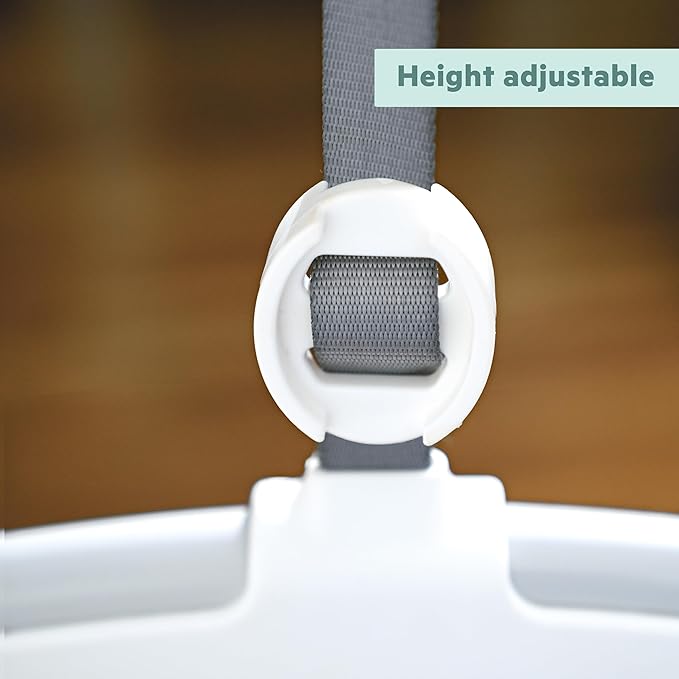 - Easy to use when baby can sit up by himself or herself (approximately 6 months old); baby must weigh less than 26 lbs; height adjustable with safety strap on the clamp