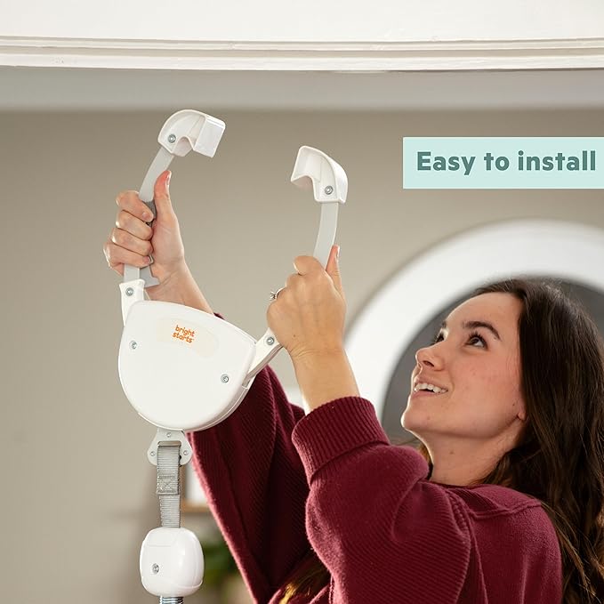 - Bright Starts Once Upon a Bounce Door Jumper from the #1 Manufacturer of Activity Jumpers; compact and easy to store; fits securely to most doorways (wall thickness must be between 4 – 5” with trim thickness of at least .5”) with no tools needed
