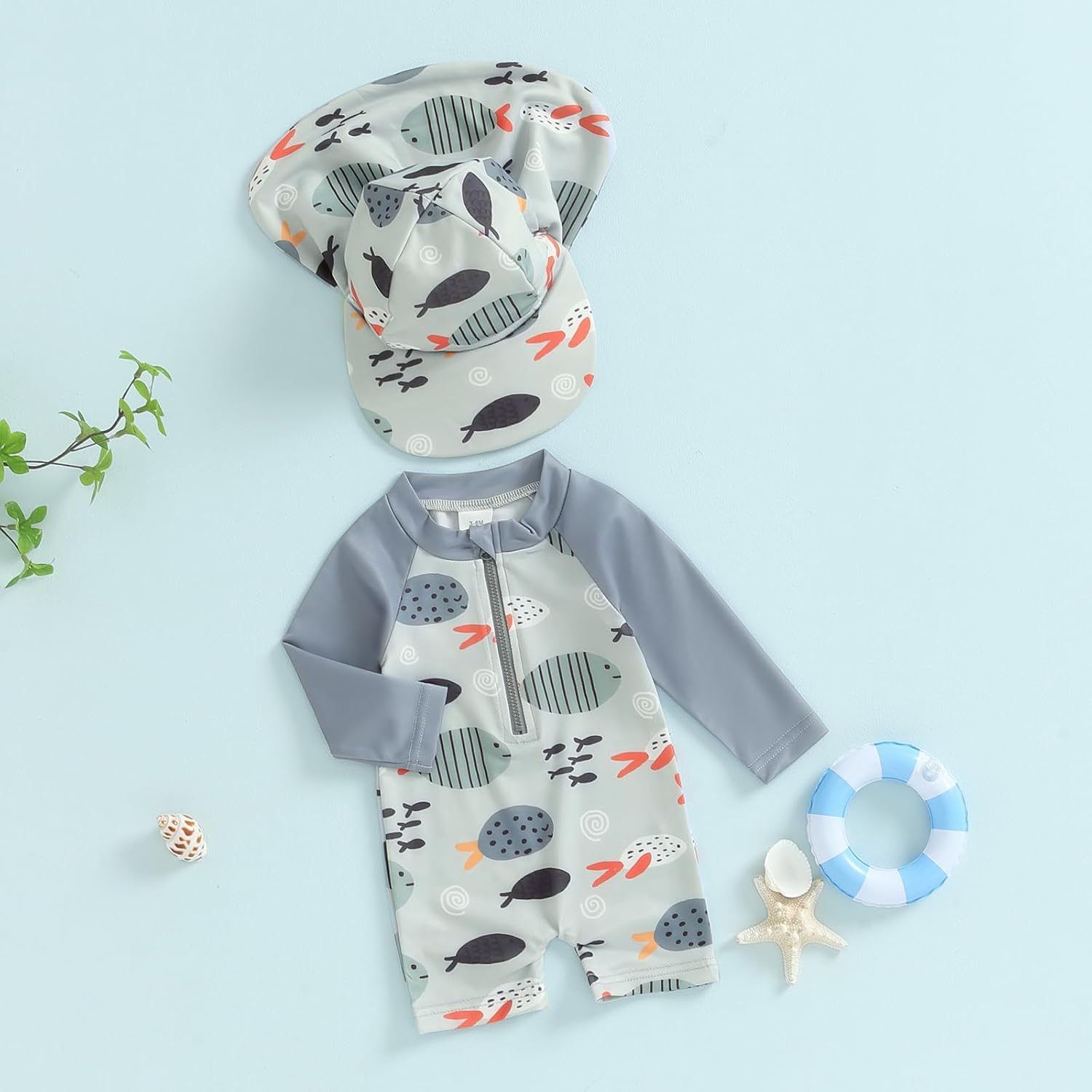 - Design: Toddler bathing suit boy, infant long sleeve swimsuit boy, round neck, back/front zipper closure for easy on and off, newborn swimsuit boy, dinosaur/marine animal print, super cute and lovely, your little boy will stand out in the crowd