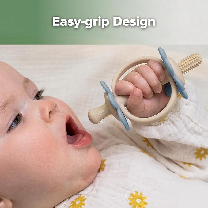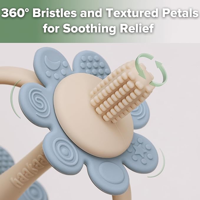 - ππππ-πππππ ππππππ πππ πππππππ:With a nipple-shaped end for comfort and 360Β° bristles for gum massage, this teether provides teething relief and help supports oral hygiene.