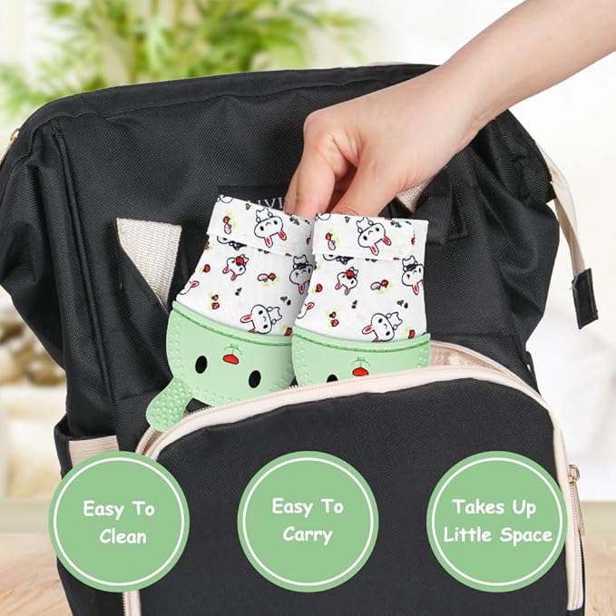 - 【Healthy and Safe Material】Our teething gloves are made of food-grade silicone, free of BPA, PVC and lead, protecting your baby's soft hands. Teething toys can be easily cleaned with a cloth, are dishwasher-safe, and can also be boiled in water