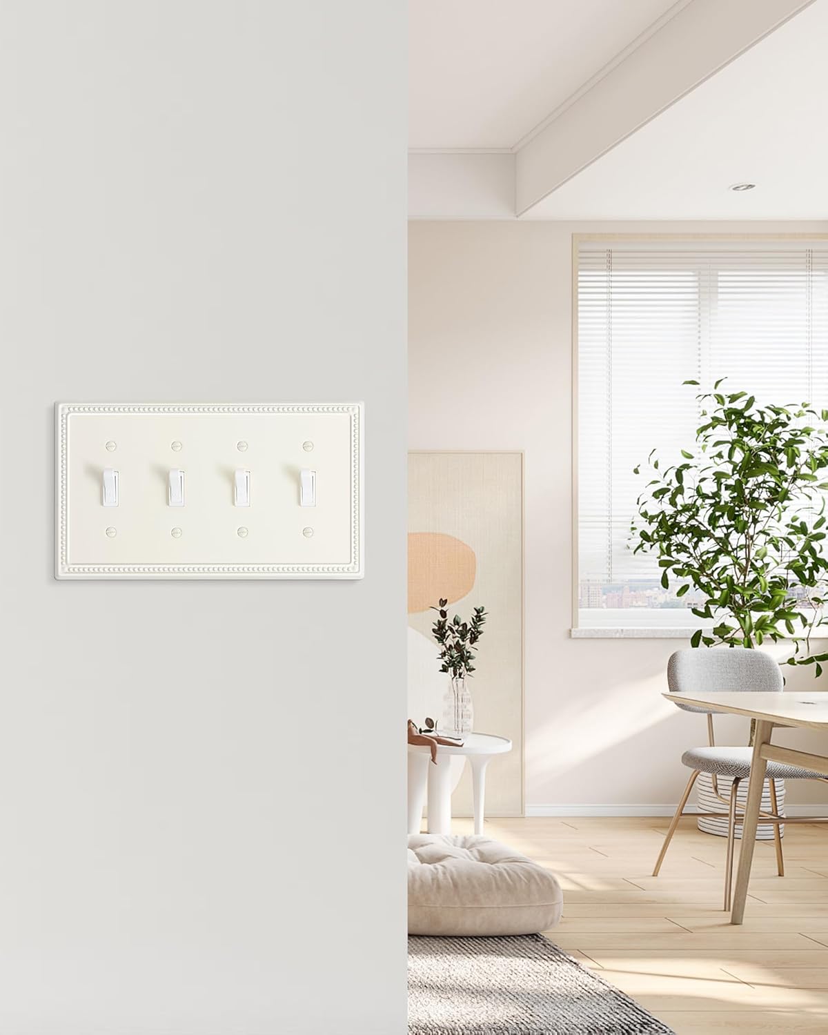 - Elegant Light Almond Finish - The quad light switch plate covers feature a soothing light almond finish, not as dark or yellow as ivory, offering a warmer tone than stark white. This elegant finish adds a fresh appeal to your room and seamlessly blends with any interior style, enhancing the overall aesthetic of your home decor.