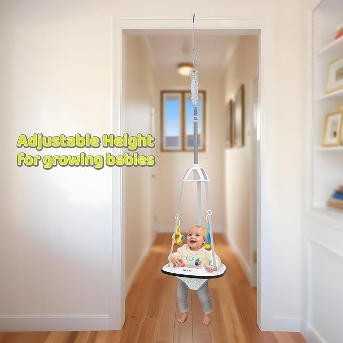 - Sturdy and Safe Bouncing Fun: The no-marks bumper protects doorframes from scratches and absorbs shocks for smooth, stable jumps. Combined with heavy-duty steel springs, it ensures wobble-free bouncing.