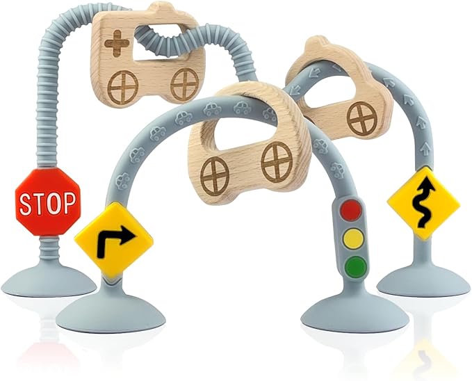 - 【Say Goodbye to Toy Tossing】Our suction toys are designed with thick-edged suction cups that can stay firmly attached to the high chair, making your little one have fun while parents can eat without interruption. The roller coaster design allows babies to move oak rings from one end to the other, making a "dada" sound that promotes laughter and exploration. Whether it's mealtime at home, on the road, or a plane, bring the joy of montessori sensory exploration and teething relief wherever you go.
