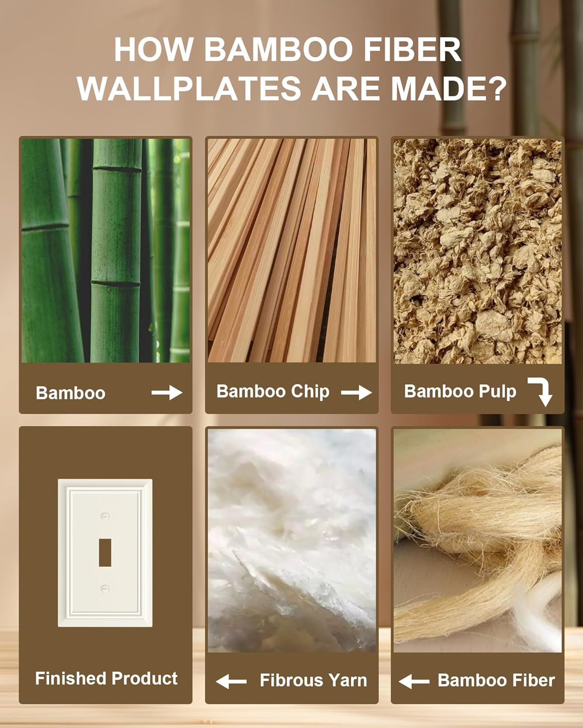 - Natural Bamboo Fiber Material - The wall switch covers are made from sustainable and environmentally friendly bamboo fiber, much thicker and more robust than plastic covers, easier to clean. Resistant to heat, moisture, and corrosion, ensuring it remain a stunning addition to your home for years to come.