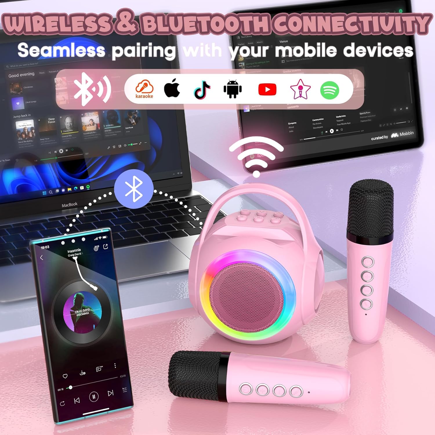 - 📱 Built-in Phone Holder for Hands-Free Singing: Features a smart phone holder slot, so kids can follow lyrics or music videos hands-free — no more juggling devices while performing!