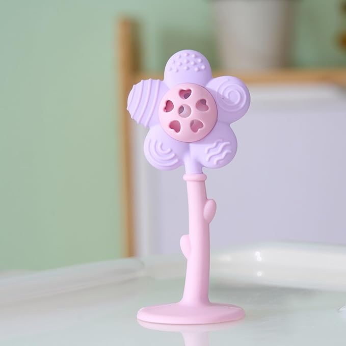 - SUCTION BASE FOR STABILITY: Adorable Sunnyflower teething toy features a strong suction base that securely attaches to most flat surfaces, keeping it firmly in place and preventing slips or drops. Perfect for use on high chairs, tables, and other smooth surfaces. Also unlock more ways for babies to play.