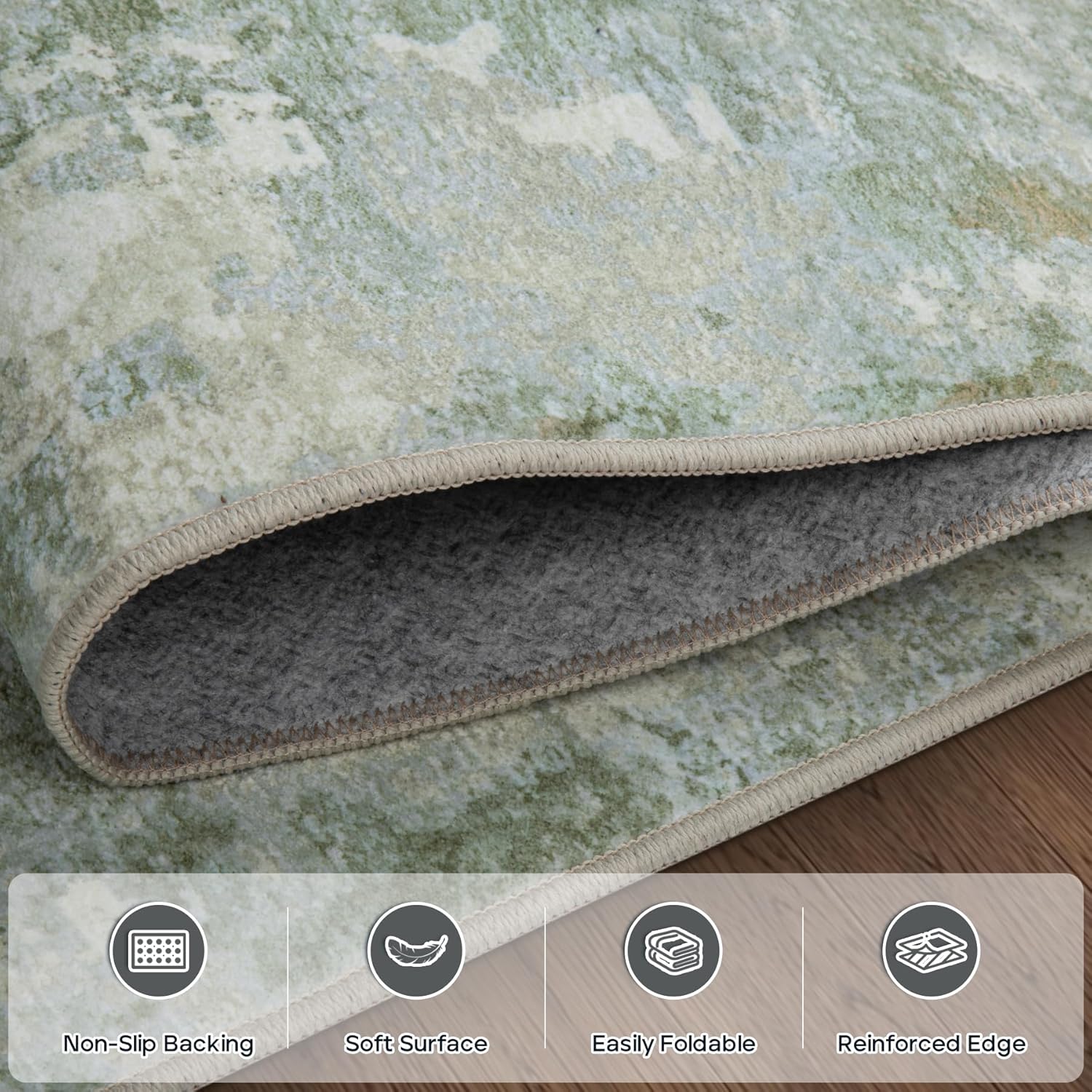 4x6 Area Rugs for Living Room Rug Washable: Modern Large Rug for Dining Room Bedroom Carpet Non Slip Low Pile 4 by 6 Indoor Abstract Nursery Home Office Green