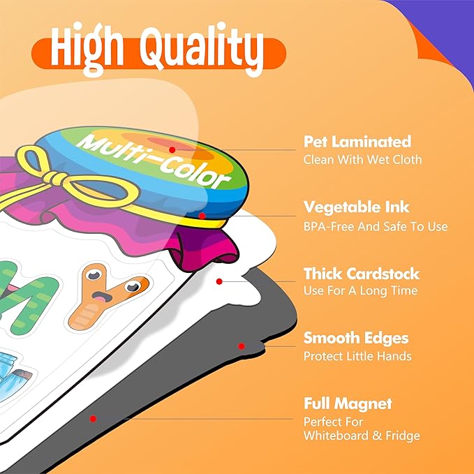 - Durable and Safe: Made of high-quality, non-toxic materials, these magnets ensure durability and safety for young learners. The smooth edges and sturdy design make them perfect for little hands to handle without worry.