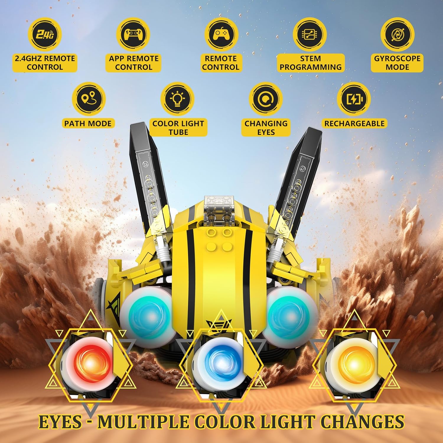 - ๐ฑ๐ฎ Dual Control Modes (Remote + App) - 2.4GHz remote (98ft/30m range) offers Path/Gyro/Programming modes. The companion app enables 360ยฐ omnidirectional control, slope navigation, and coding basics for STEAM learning. Perfect for indoor/outdoor adventures.