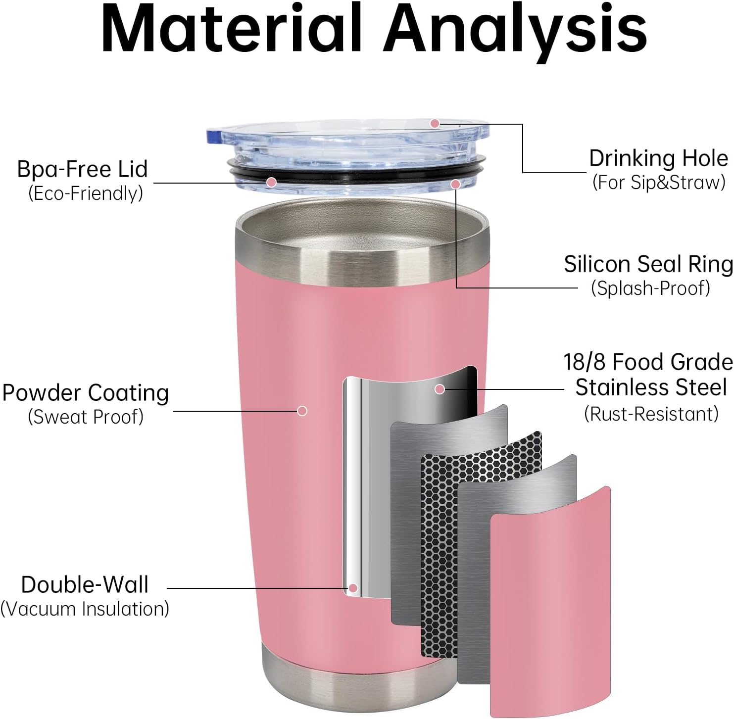 IEOVIEE 32 Pack 20oz Stainless Steel Bulk Tumblers with Lids and Straws Double Wall Insulated Travel Mug Durable Powder Coated Tumbler Bulk Cup for Cold and Hot Drinks(Pink)