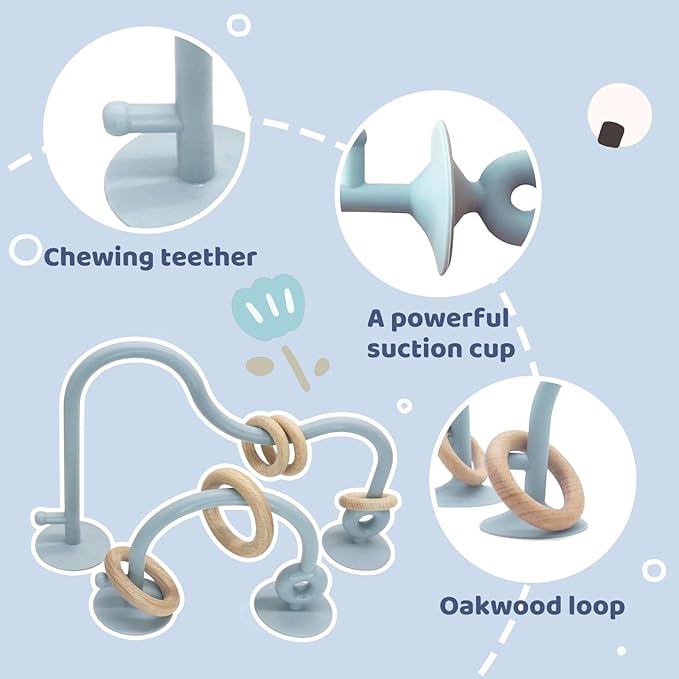 Baby High Chair Toys Teething Chew - Baby Table Toys, High Chair Suction Toy Teething Toys Silicone Teethers, Food Grade Silicon for 6 12 18 Months Blue