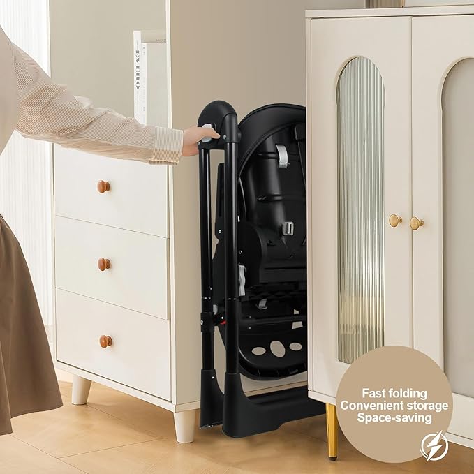 - 【Hospital-Grade Stability】3D triangular structure foldable baby high chair, passed ASTM/EN dual certification, 5-point harness.