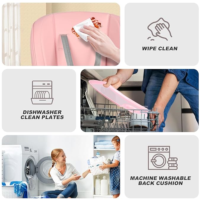 - 【Crumb-Free Design】Removable tray with 2-layer filtration, machine-washable PU seat cover with an extra soft cushion (no more trapped food like traditional fabric).