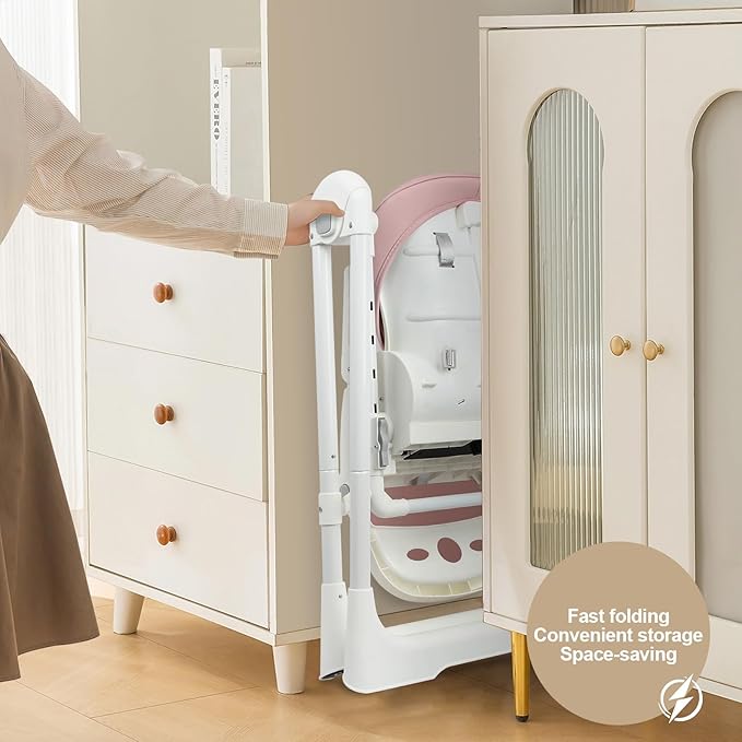 High Chairs for Babies and Toddlers Foldable High Chair Adjustable with Reclining Seat & Leg Rest, 3-in-1 Convertible Baby Swings with Tool-Free Assembly (Pink)