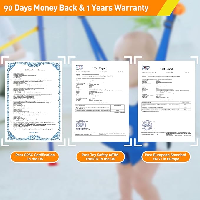 - 【Better Material, Soft & Comfortable】Safety is very important when children play, that's why we strive to make our products safer! Our baby jumpers are equipped with 304 stainless steel springs, which are strong and flexible. Two buckles and adjustable seat belts ensure your baby's safety. Made of soft cotton, it's comfortable for your elder kids to play, while liberating parents' hands.