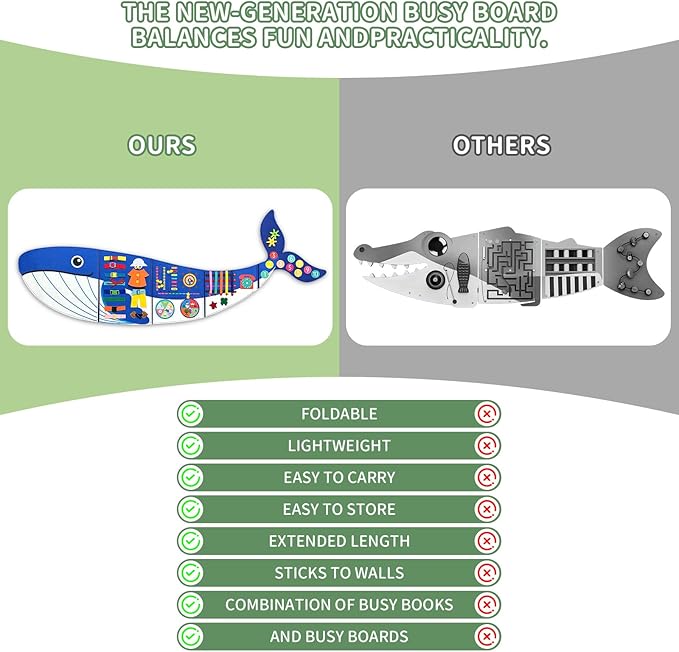 Whale Montessori Busy Board Toddler Busy Board, Activities Foldable Montessoris Toys for 3+ Years Old Wall Panel