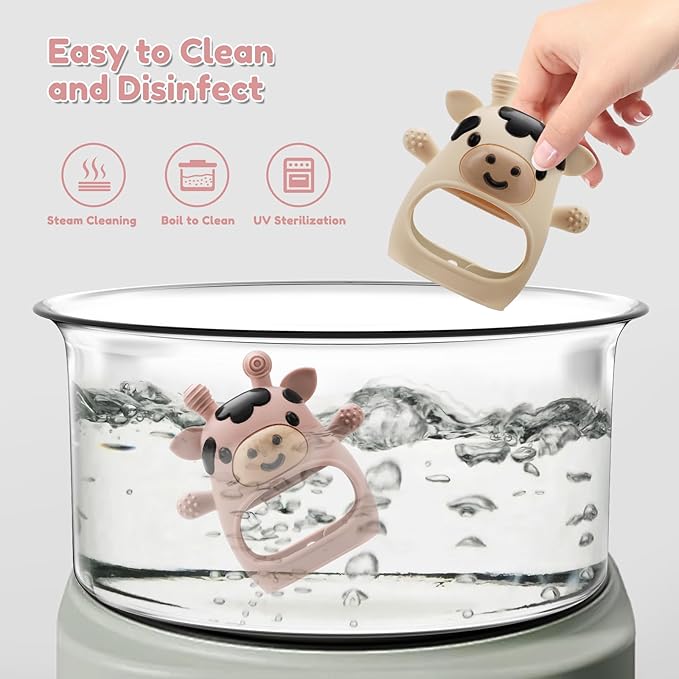 - Easy to Clean: This baby teether is made of premium food-grade silicone, resistant to high temperatures and safe for multiple cleaning methods. It can be sterilized with steam, boiled, placed in the dishwasher, or simply hand-washed, giving parents convenient options to keep it clean and hygienic for everyday use.