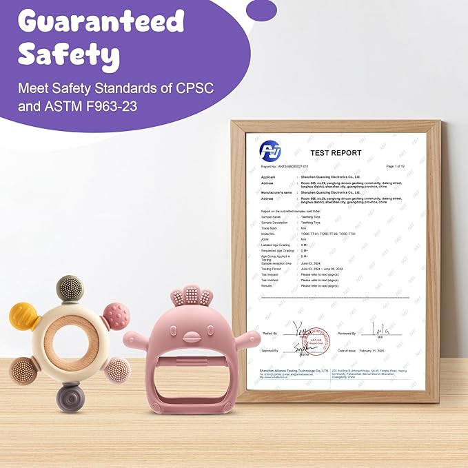 - Food-grade silicone: This baby teether is crafted from BPA-free silicone, odorless, and meets all government safety regulations and standards. It allows babies to chew safely while giving parents peace of mind.