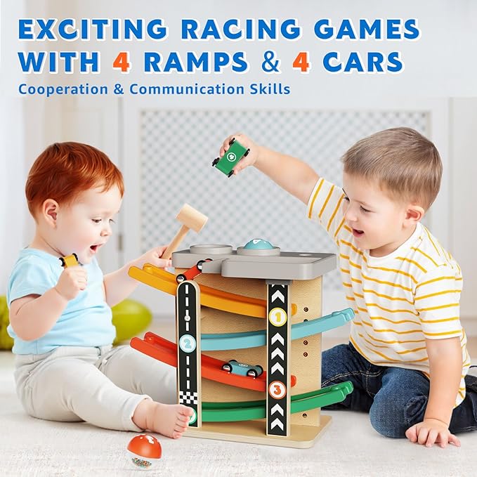 - ๐[SPARK DEVELOPMENT THROUGH PLAYFUL LEARNING] - Watch your child learn and grow with every tap and race! As your baby pounds balls, they strengthen fine motor skills, hand-eye coordination, and arm strength. The thrilling racing games enhance visual tracking, problem-solving abilities, and grasp cause-and-effect. For older toddlers, our toy helps them learn colors, numbers and cultivates logical thinking. Aligned with Montessori principles, it transforms playtime into valuable learning adventures, laying the foundation for key skills and cognitive growth from infancy to early childhood.