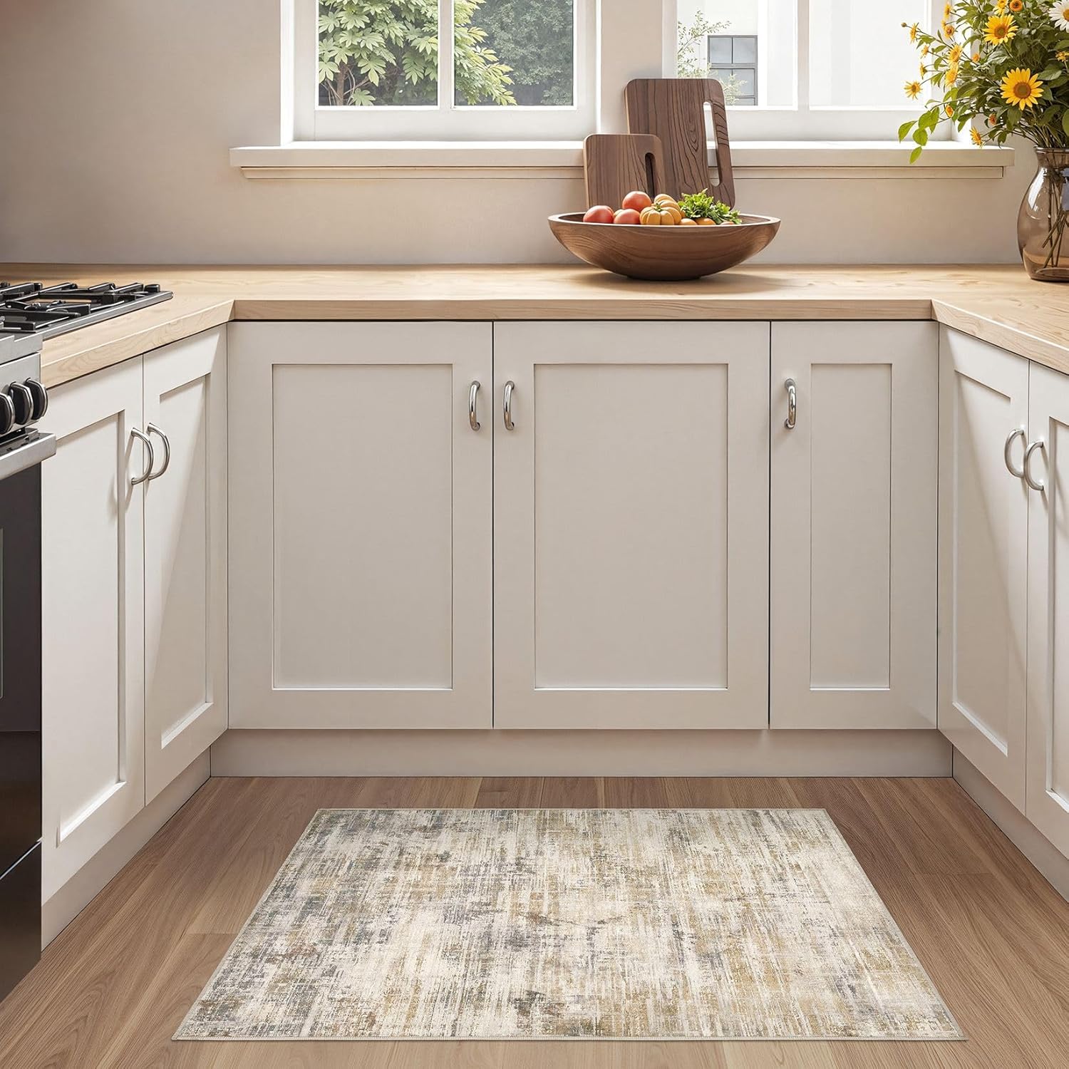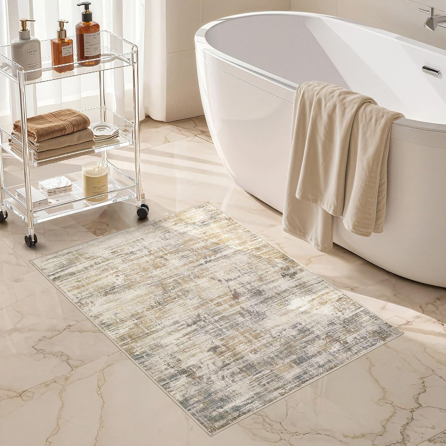 2x3 Entryway Area Rugs: Washable Neutral Abstract Small Rug Door Mat Non-Slip Soft Low Pile Indoor Carpe for Entrance Kitchen Front Door Bathroom Entry Kids Room - Golden Brown