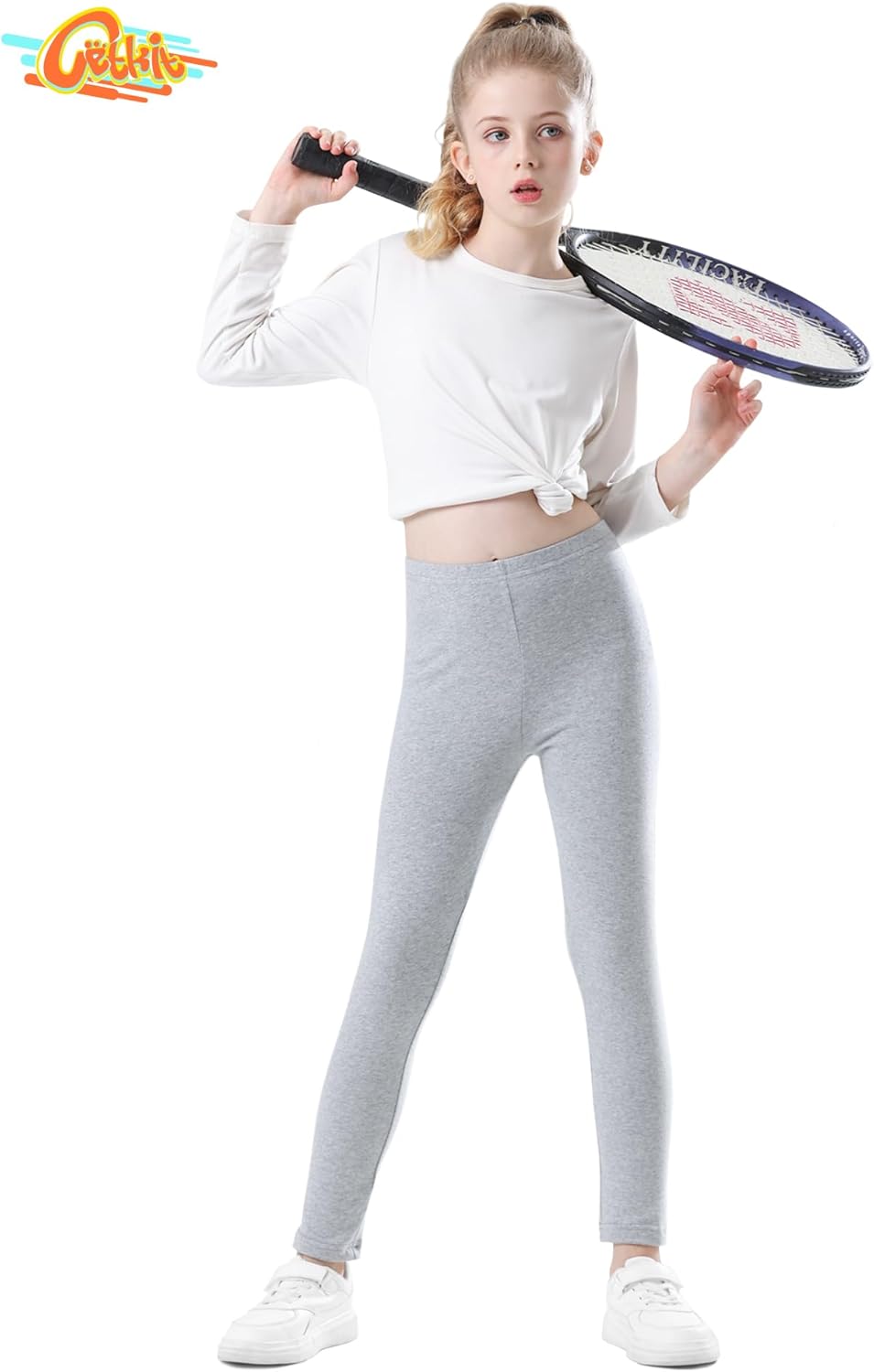 - Girl Leggings with Great Softness and Breathability, Light Grey, 10-12 Years