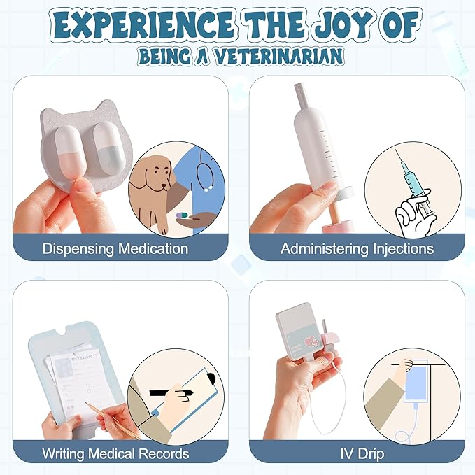 - 【Fun And Educational】 This kid doctor play set develops fine motor skills, empathy, and storytelling. The ultimate kids doctors play set for nurturing responsibility through pet care scenarios!