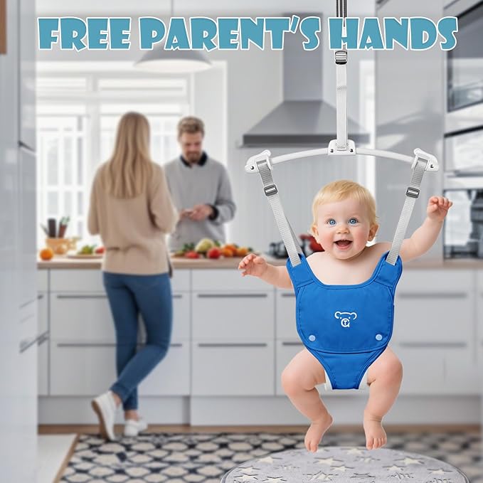 - Easy Assembly and Portability: Lightweight and compact, designed for busy parents, our portable baby jumper for baby is easy to assemble and disassemble, making it perfect for travel and storage, you need is a suitable doorframe, and your baby can play safely within the room