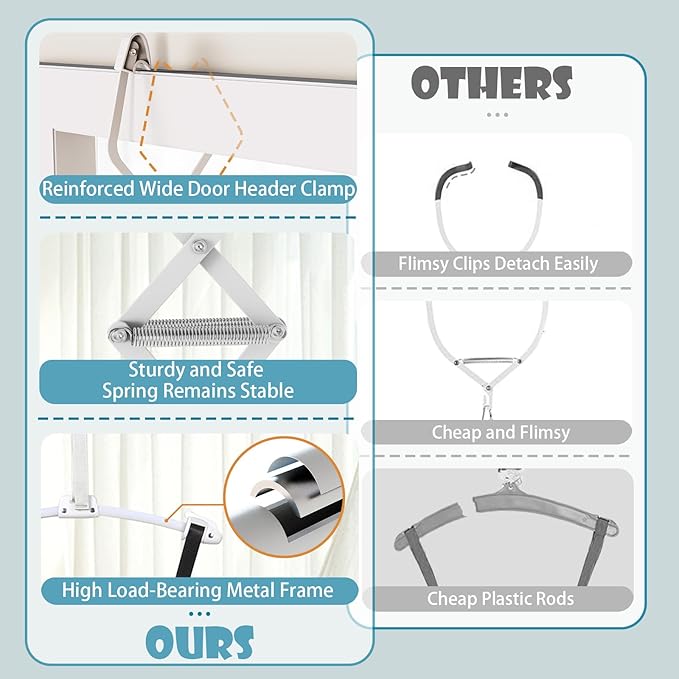 - Easy Assembly and Portability: Lightweight and compact, designed for busy parents, our portable baby jumper for baby is easy to assemble and disassemble, making it perfect for travel and storage, you need is a suitable doorframe, and your baby can play safely within the room